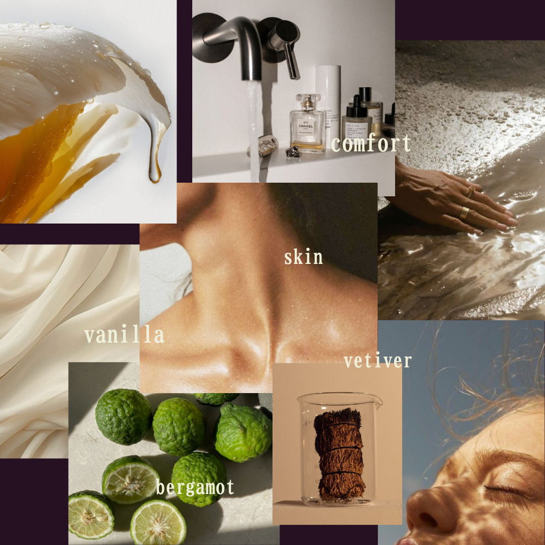 This skin scent captures the softness of skin warmed by the sun. Opening with warm glowing bergamot that settles and fades into a lived-in musk.